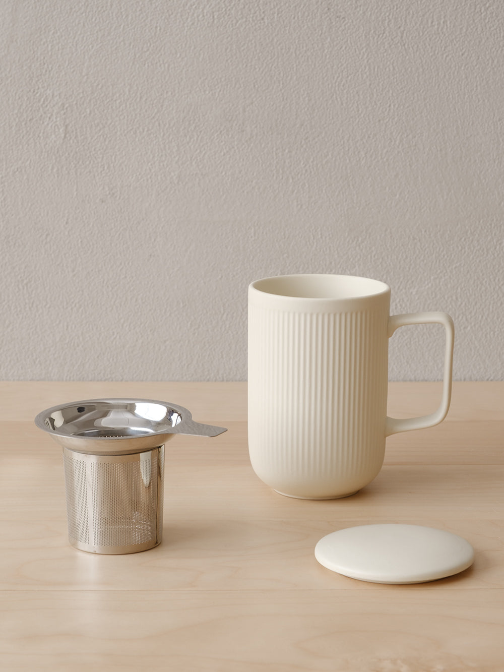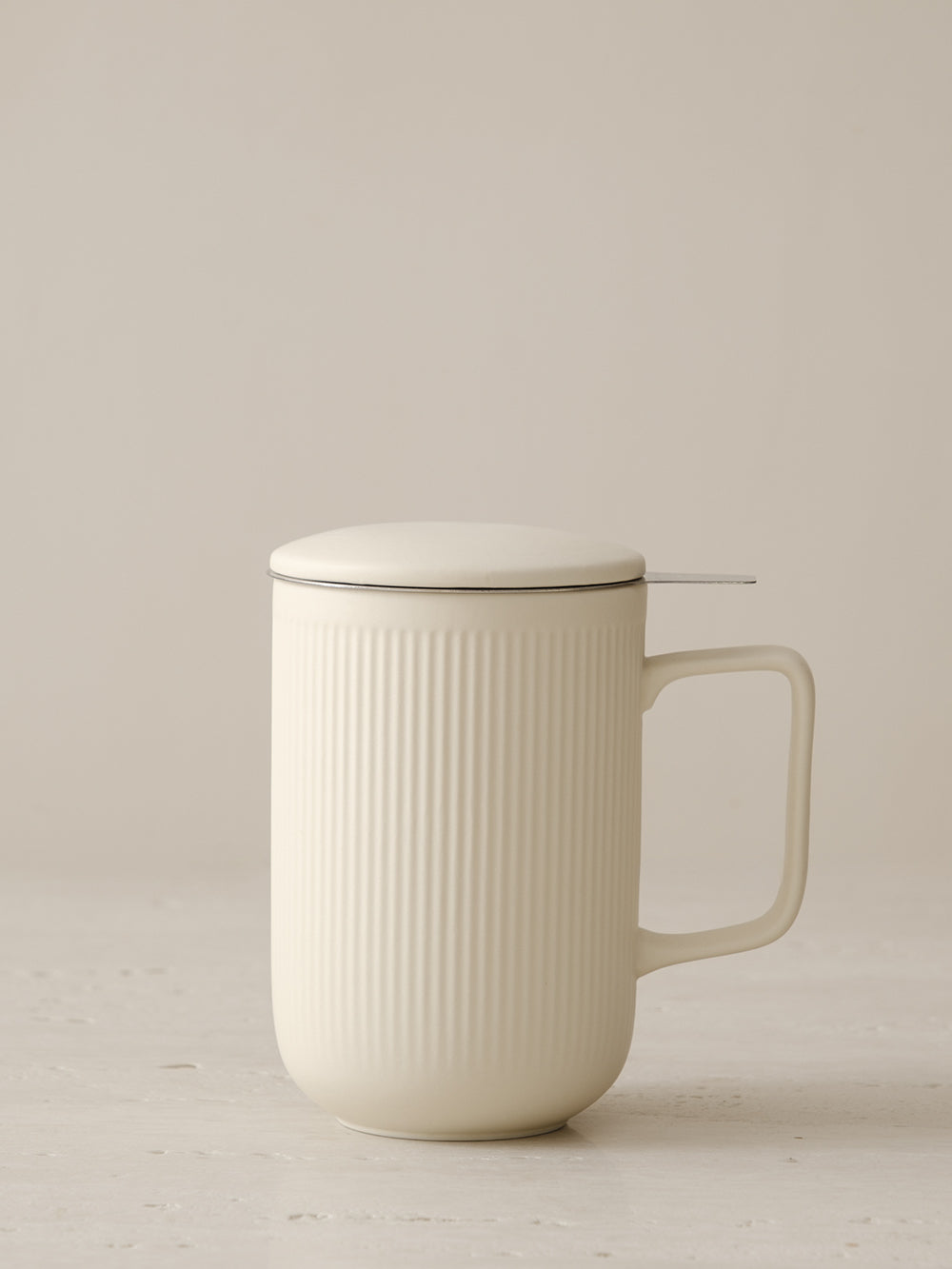 Crème Glaze Vertical Striped Tea Infuser Mug